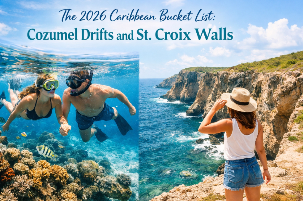 At Java Travel USA, we believe that a truly transformative journey isn’t just about where you go, but how the destination changes you. Whether you are a seasoned explorer or someone looking to take their first fin-kick into the deep, the Caribbean remains the heart of the underwater world. This year, our focus turns to two iconic destinations that offer vastly different, yet equally breathtaking, experiences: the effortless glide of Cozumel’s drift currents and the dramatic, vertical majesty of St. Croix’s legendary “Wall.”
